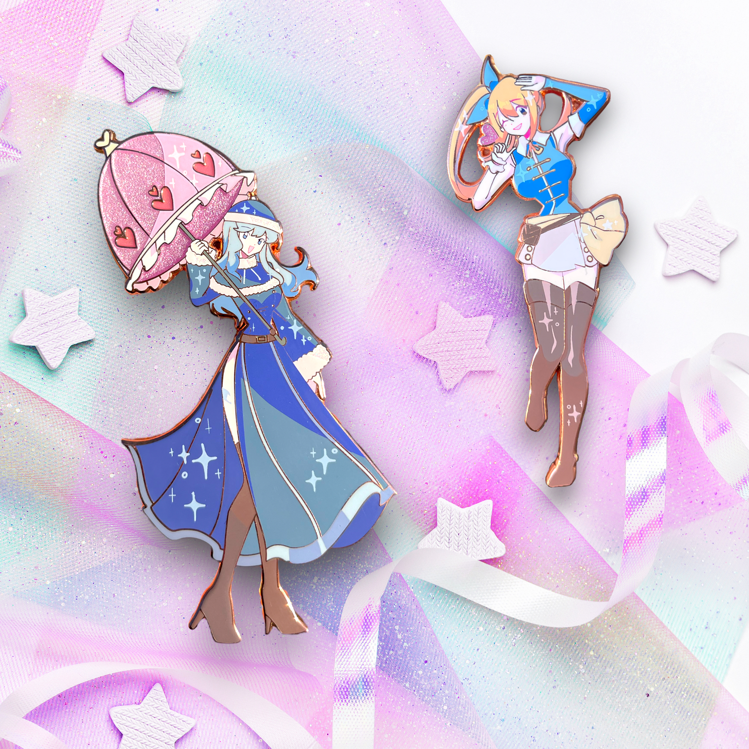Most of my pins are limited edition so my catalog often has a mix of both old and new designs! The sizes range from 0.5 inches to 5’ with a price points of around $10 to $75, which means there is something for everyone :)